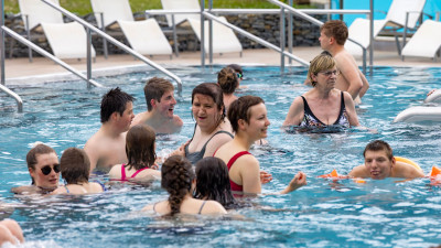 Schon frühmorgens steht Ben als Erster auf der Plattform der Therme Leukerbad. Mit leuchtenden Augen stürzt er sich die Rutschbahn hinunter – immer und immer wieder. Am liebsten im Wettrennen mit seinem Freund Mario. Die halbseitige Lähmung der rechten Körperhälfte scheint vergessen: «Für mich ist alles machbar. Ich weiss mir zu helfen», sagt Ben. Im Wasser fühlt er sich frei, selbstbestimmt und voller Energie. Doch es ist nicht nur das Schwimmen, das ihn begeistert. Es ist das Dazugehören. Die vertrauten Gesichter. Die Gemeinschaft.
