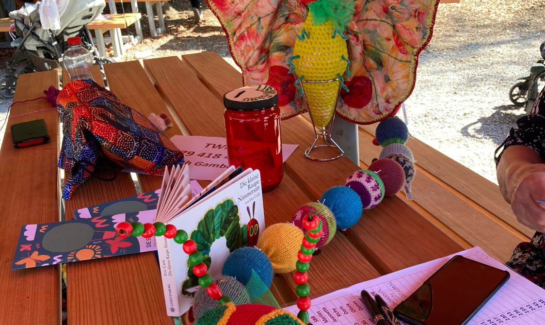 Eine hungrige Raupe, ein grosses Herz: Stricken für den guten Zweck